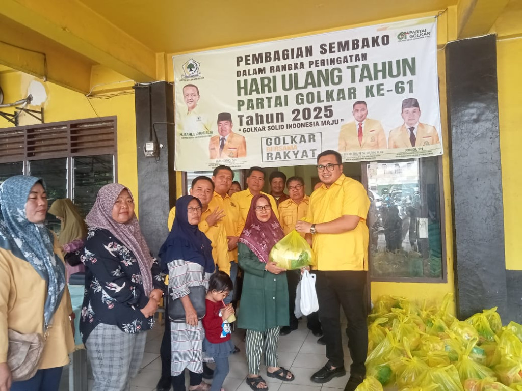 SUMSEL.WAHANANEWS,Muara Enim – Memperingati Hari Ulang Tahun (HUT) ke-61, Dewan Pimpinan Daerah (DPD) Partai Golkar Kabupaten Muara Enim melaksanakan kegiatan sosial berupa pembagian ribuan paket sembako bagi kaum duafa dan masyarakat kurang mampu. Aksi kepedulian ini dilakukan secara bertahap di seluruh daerah pemilihan (dapil) se-Kabupaten Muara Enim, dengan puncak kegiatan digelar serentak pada 20 Oktober 2025 di seluruh Indonesia.